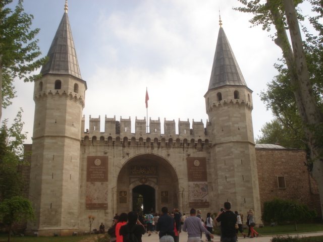 トプカプ宮殿に入るための門で多くの観光客が並んでいます。中に入る人が多いので、変な時間にいくと大変なことになります。