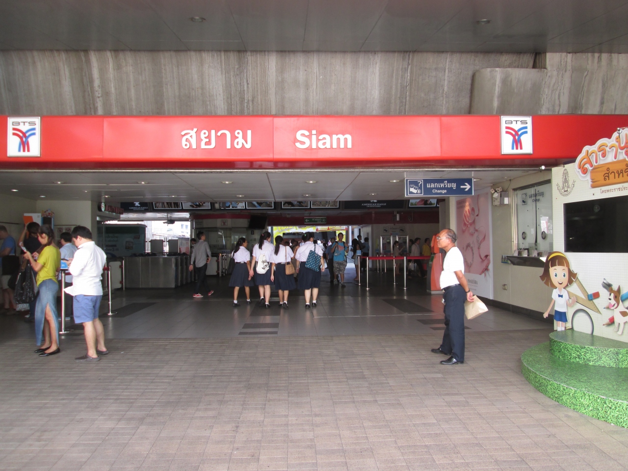 BTSサイアム駅の南側は商店街、露店などが並んでいる地帯でしたが、再開発が進み2014年にサイアムスクウェアワンがオープンしてから駅の南側も雰囲気が変わりました。以前は駅から下車して一旦地上に降りる必要がありましたが、サイアムスクウェアワンとBTSの駅をつなぐ通路ができ簡単にアクセスすることができました。