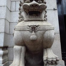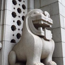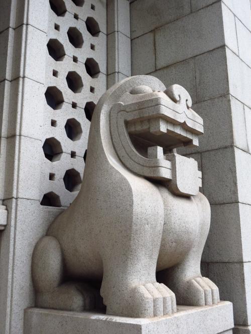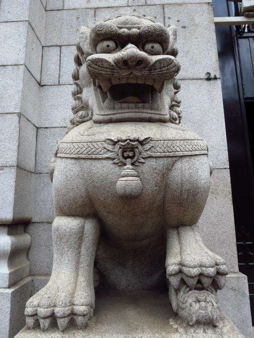 中国銀行の建物は近くにもう一つありますが、そちらは新しい方の中銀大廈(中国銀行タワー)で、こちらは1950年に建てられた古いビルです。入口には怖表の獅子が建っていて迫力があります。