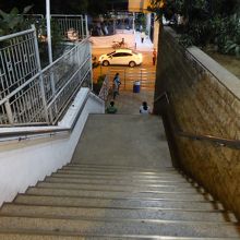 横断歩道を渡っていつもは左に曲がってスロープを登ってましたが 逆です