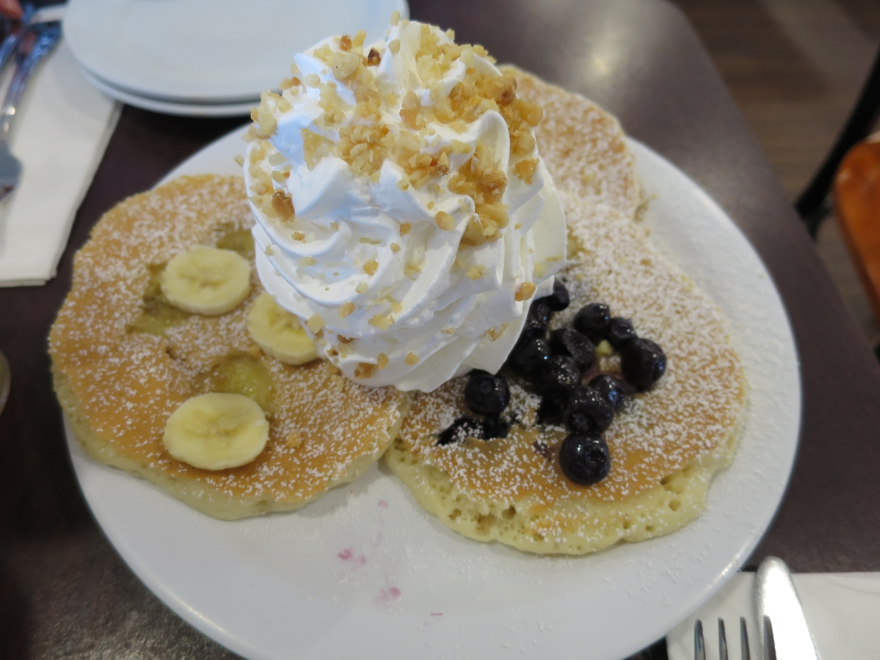 グアムに向かう飛行機で出された昼食を食べたのですが、ちょっと少なく、食べた気がしなかったので、ホテルにチェックイン後、近くにあったこの店に、パンケーキを食べに行きました。
