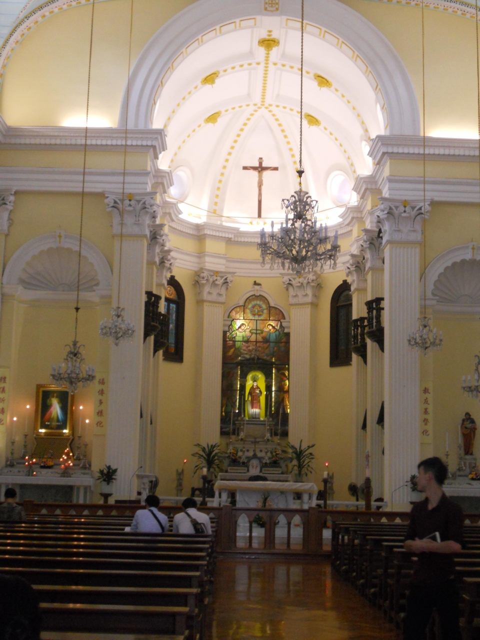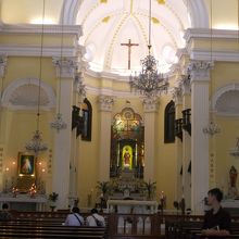 バスでバラ廟まで足を伸ばし、セナド広場まで徒歩で北上する途中にあるので立ち寄りました。白とクリーム色のとても綺麗な教会です。ネオ・クラシック様式にバロック様式が融合した石造りですが、屋根は中国製タイル、左右対称の高さ21メートルの鐘楼など、見ごたえがあります。