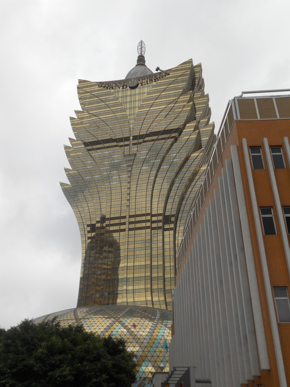 マカオ半島側では一番目立つグランドリスボアホテル内のカジノです。外港フェリーターミナルからリスボアホテルまでの無料シャトルバスを待ちましたが、まったくバスが来ないので、スター・ワールドホテル行きのバスに乗り、中のカジノを見学後、歩いてグランドリスボアのカジノへ行きました。