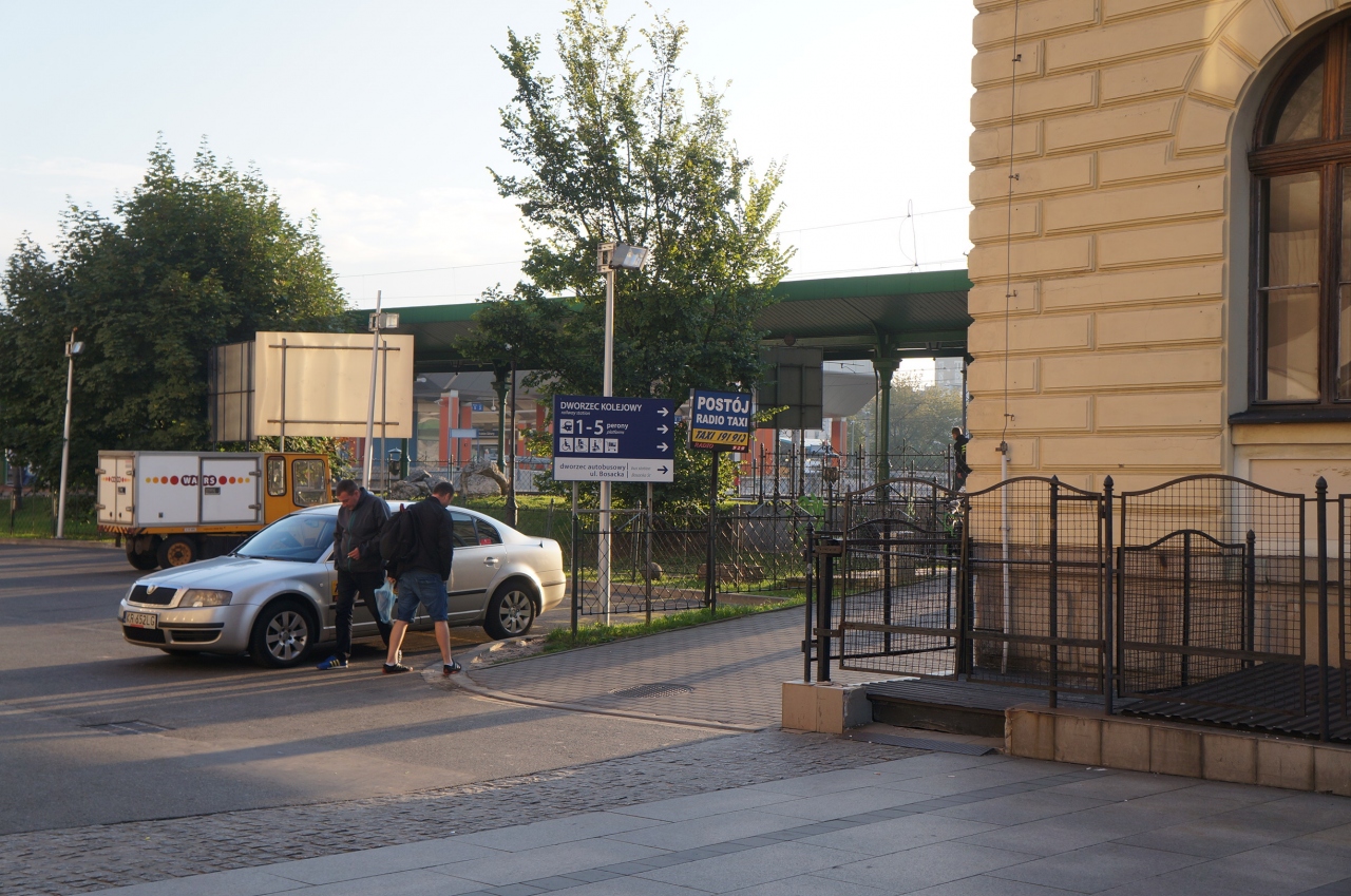 旧市街地側から向かうと、モールの南側(手前)に右へ進む小道があり、そこを入るとクラクフ駅舎が見えるので、駅舎を正面にして左側の通路を進んだ先にある階段を降りると、クラクフ中央駅の地下に着きます。