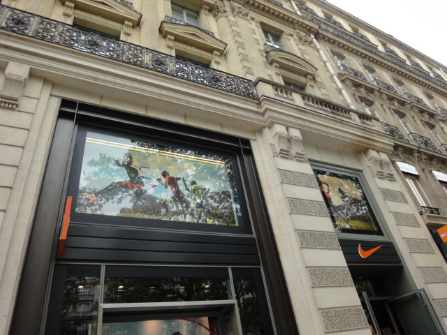シャンゼリゼにあるナイキです。ナイキは、どこで見てもカッコイイですね。パリのナイキは、地に足がついたかんじ、というかシンプルでかっこいいナイキでした。シューズだけでなくウェアとか、いろんなスポーツ用品がありました。
