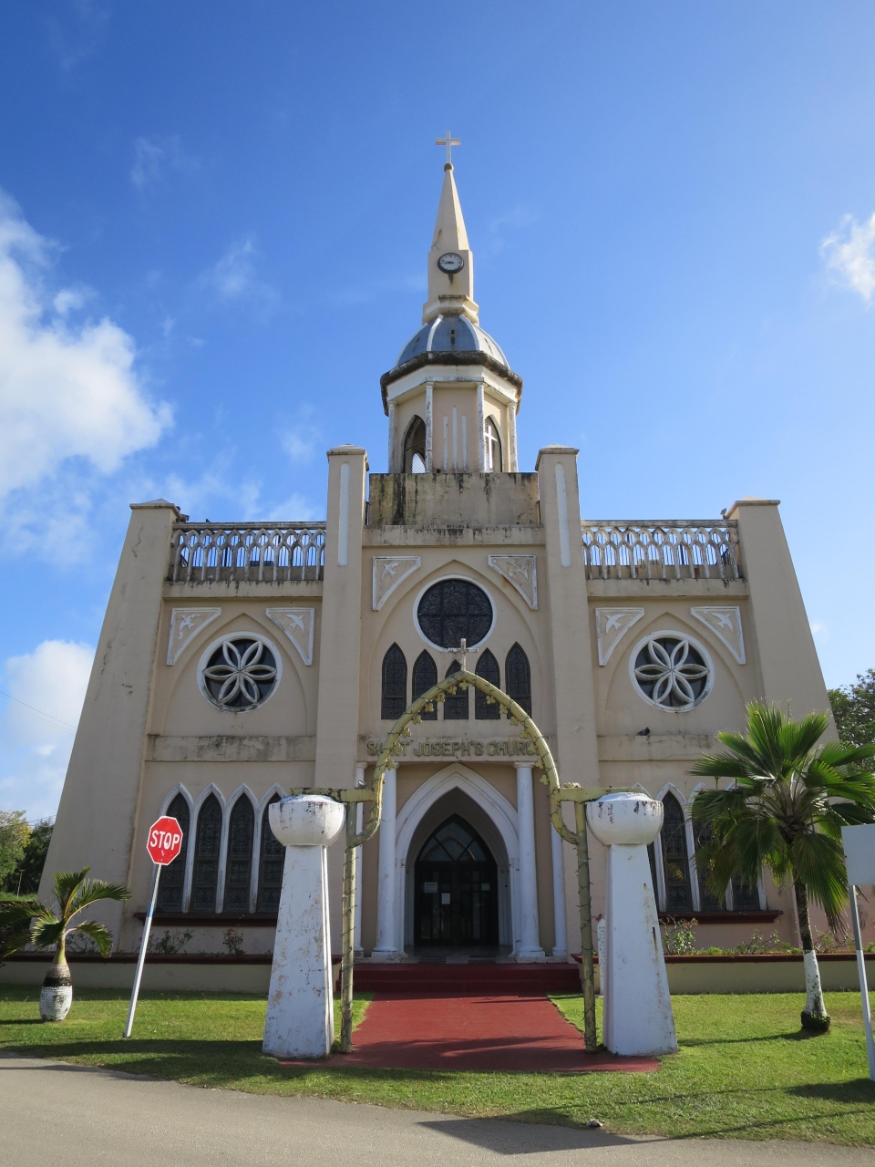 グアム島南東部にあるイナラハン村の入口にある村の教会です。スペイン統治時代に建てられた尖塔のある教会だそうです。