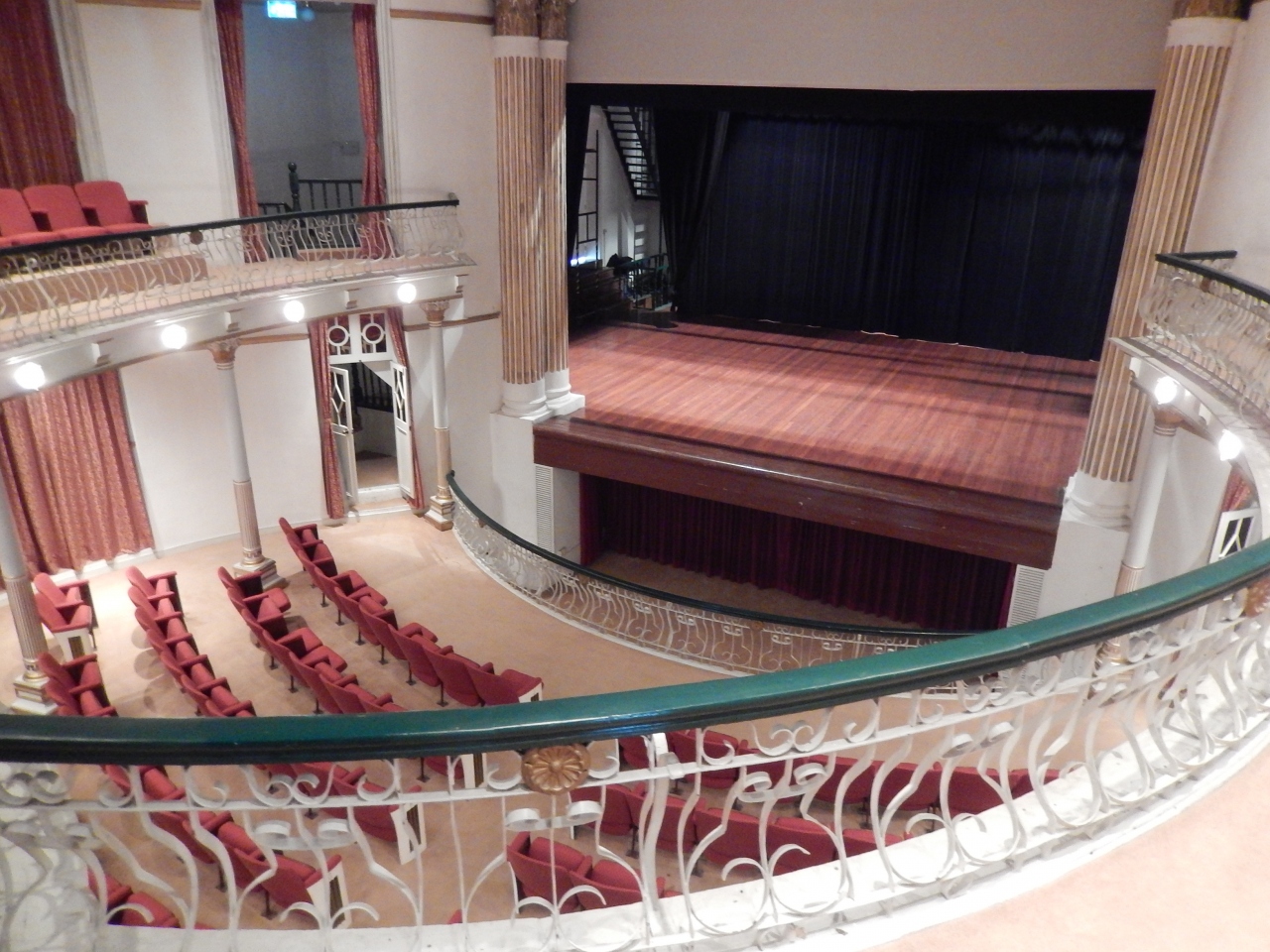 以前訪れたときはイベント開催時のみ入場可能ということで外観しか見れませんでしたが、今回訪れると入場できるようになっていました。入口を入るとシャンデリアがある大きなホールがあり、その奥の階段から2階に上がれるようになっています。2階からは劇場全体が見渡せ、昔の社交場の雰囲気が伝わってきます。
