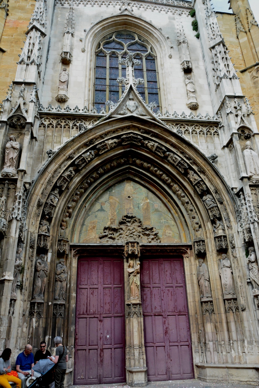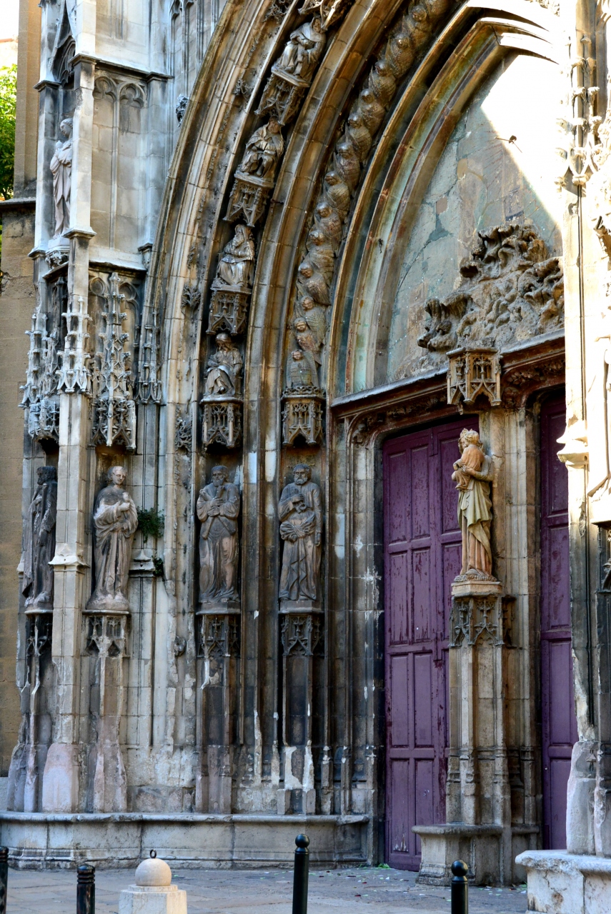 教会の外観正面だけでも3つの様式が見られ、教会内は12世紀プロヴァンス様式の「ローマ身廊」、フロマンの芸術作品でもある13世紀の「ゴシック」身廊、15世紀の「バラック様式」の身廊と3つの身廊があります。