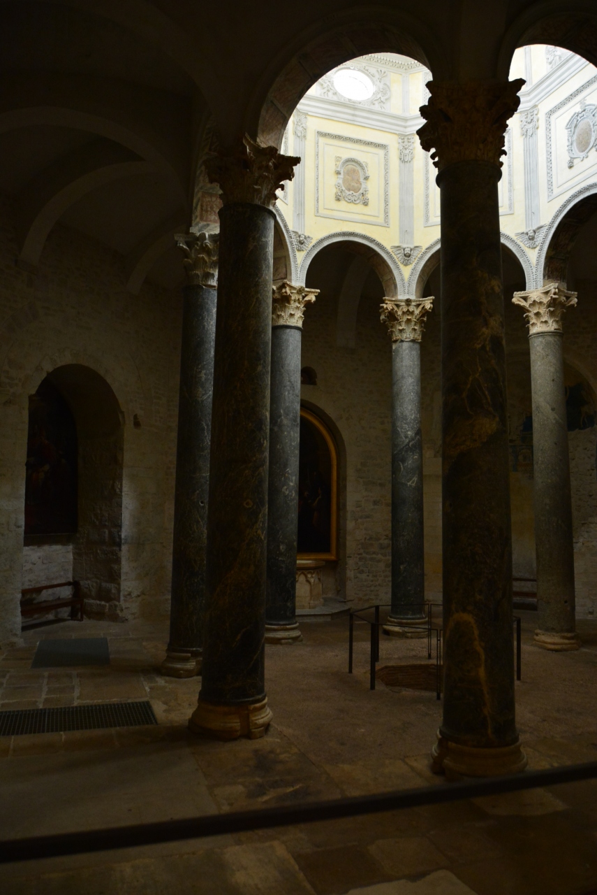 教会に入るとすぐに、神殿のような八角形の洗礼堂があり、17世紀前後の絵画が飾られていて、ここだけ教会と言うより美術館のような雰囲気です。