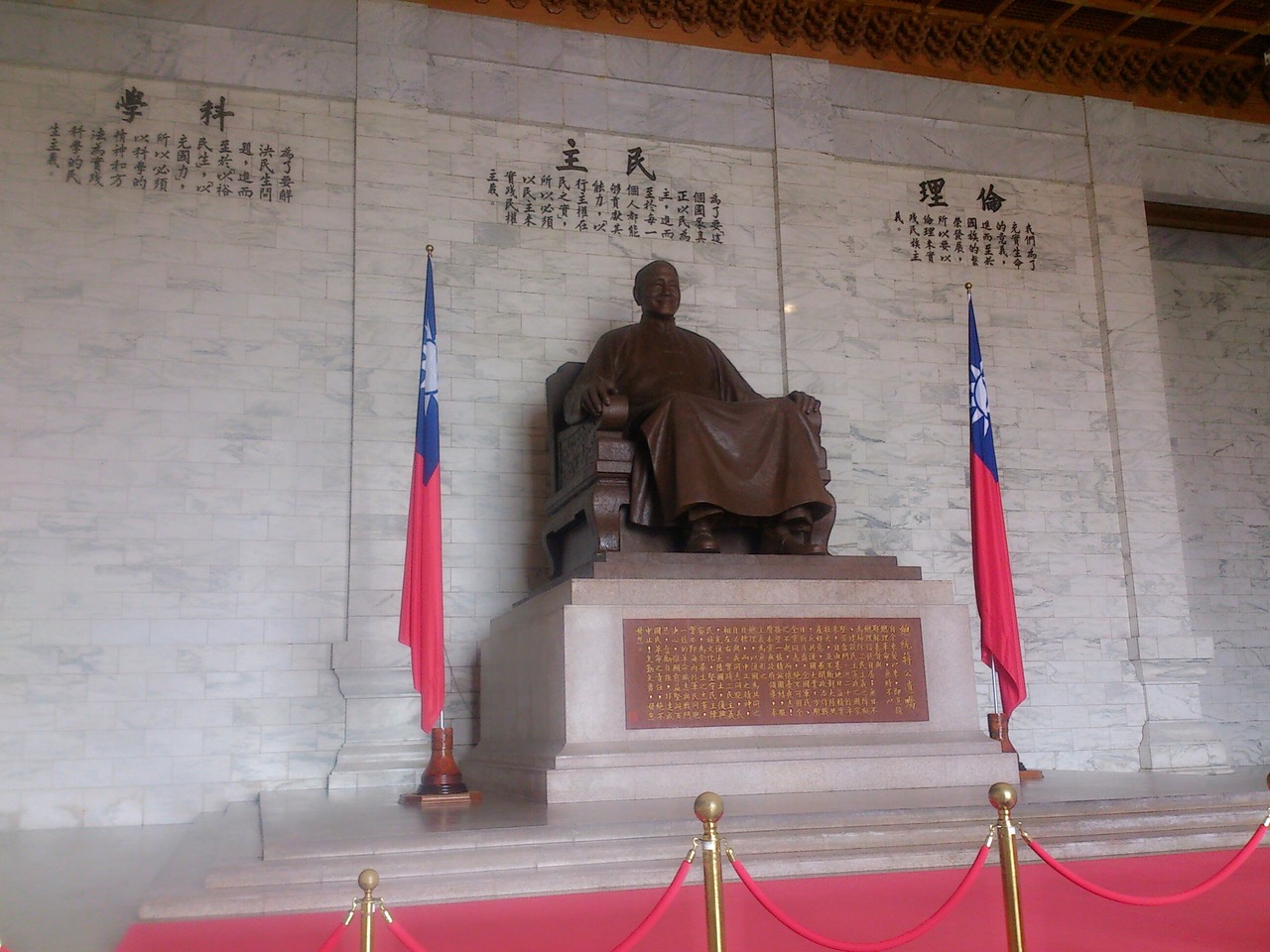 国民党指導者蒋介石の功績を讃えるために、後世になって軍用地に建設された記念館です。蒋介石や台湾の歴史を順を追って解説しています。周りに芸術院や音楽院も建設され、全体が広場、公園として整備されています。以前、旧正月期間に行ったときは閉鎖されていました。