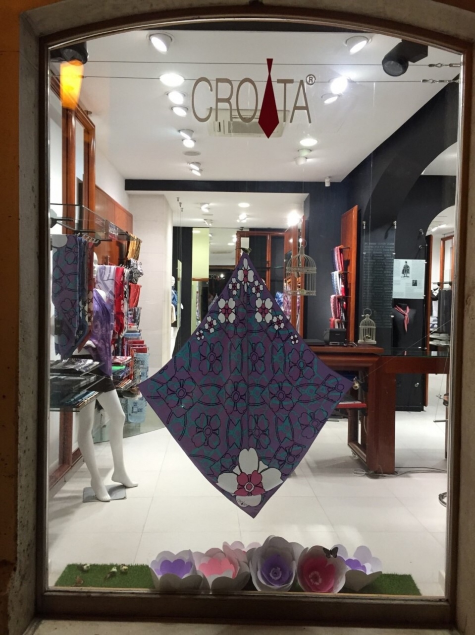 青銅の門を入って、ペリスティルの奥に面してあります。とても分かりやすい場所です。私が訪れた時には綺麗なスカーフがショーウィンドウに飾られていました。お値段はちょっと高いのですが、ネクタイ発祥の地、クロアチアに来た記念に、ネクタイを1本だけ買ってみました。