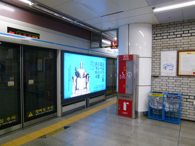 南大門市場に行くため下車。会賢駅(フェヒョン)はホームが狭く墜落防止策がなかったら線路に落ちてしまいそう。防災上の技術協力を東京都と情報提供しているようですが、安心安全で快適な地下鉄を目指して欲しいですね。また地下鉄路線図の駅名には会賢駅となっているのですが、実際ホームの掲示板には會賢駅と表示されていました。ちょっと間違いやすいので注意してね。