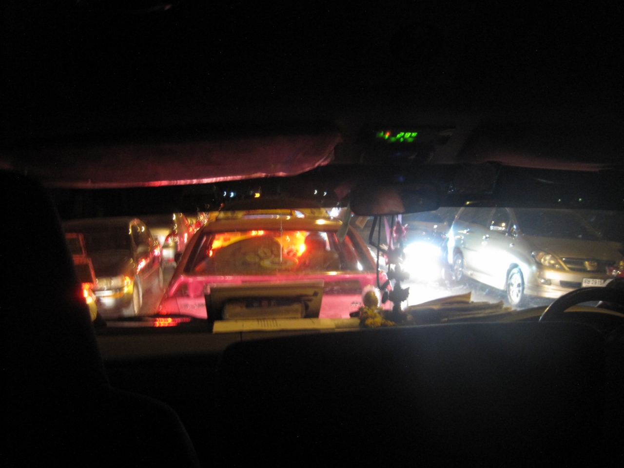 いきなり1ボックスのロットゥーに押し込まれて、大渋滞の道をのろのろと進み...