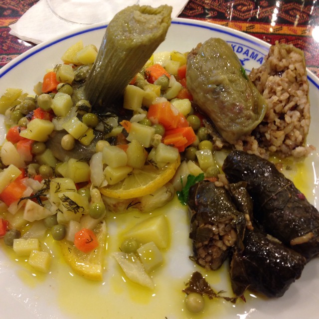 シィルケジ地区にあるロカンダが集中する一角。どこにしようかと悩みます。外からお惣菜をチラ見して盛り合わせできるか確認して入店(ちょっとずつ色々な物を食べたいので)少量でもイヤな顔せず対応してくれ感じがよかったのとサルマ(ぶどうの葉でピラフを包んだもの)が美味しかったので2日続けて行きました。店内で食事をした際もオーナーらしきおじさんがとても親切でした。サルマは1つ1TL。野菜を使った総菜がたくさんあります。
