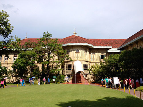 この宮殿があるドゥーシット地区は近くに都市鉄道網がないため、外国人と見るとふっかけてくるタクシーか複雑過ぎて外国人には敷居が高い路線バスを利用しなければ行けない不便なところ。しかし、ここにはウィマンメーク宮殿の他にもアナンタサマーコム宮殿(王宮の入場券を見せると入場無料)、ラーマ5世騎馬像、ワット・ベンチャマボピットと観光名所が集中しており、ぜひとも見ておきたいもの。