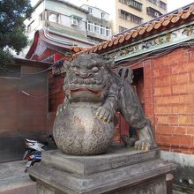 狛犬が大きな玉を押さえつけておりまして、かわいらしく、ほほえましい表情でございました。