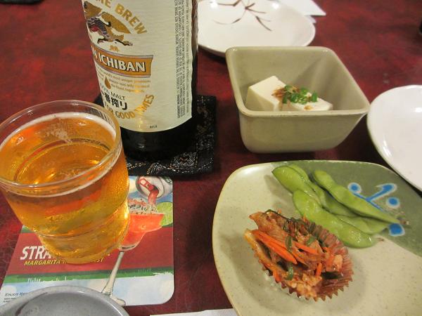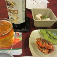 冷奴、枝豆、豚キムチ、焼鳥、シーフードケラグエン、そうめんなどが提供されました。味付けも良くて美味しかったです。