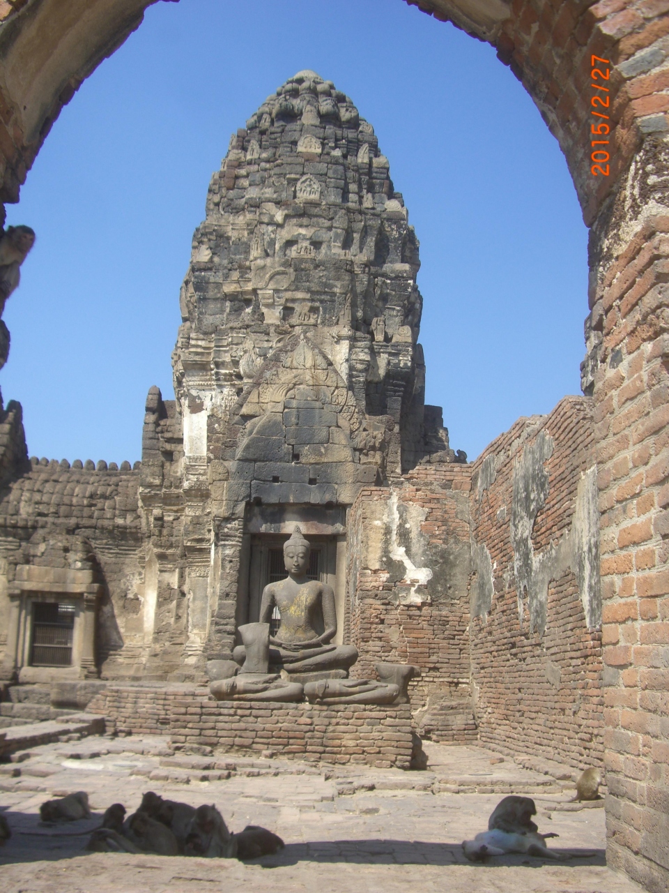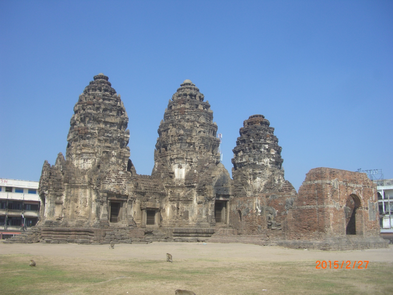 モーチットマイからミニバンで所要 2時間45分 108THB,新市街地に着くので見所のある旧市街地にはモーターサイで移動 40THB。周辺はサルで一杯、1匹の子サルと戯れたら数匹の子ザルに背中に飛び乗られる。プラーンの内部にはバリで見られる性器崇拝のリンガ(女性器)がある。旧市街地ロッブリー・シティーホテル前から1時間に1本のミニバンが戦勝記念塔へ出ている 所要 2時間20分 110THB。