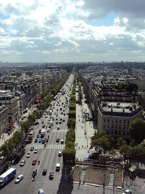 凱旋門のトップからは12本の放射線状の路が見えます。