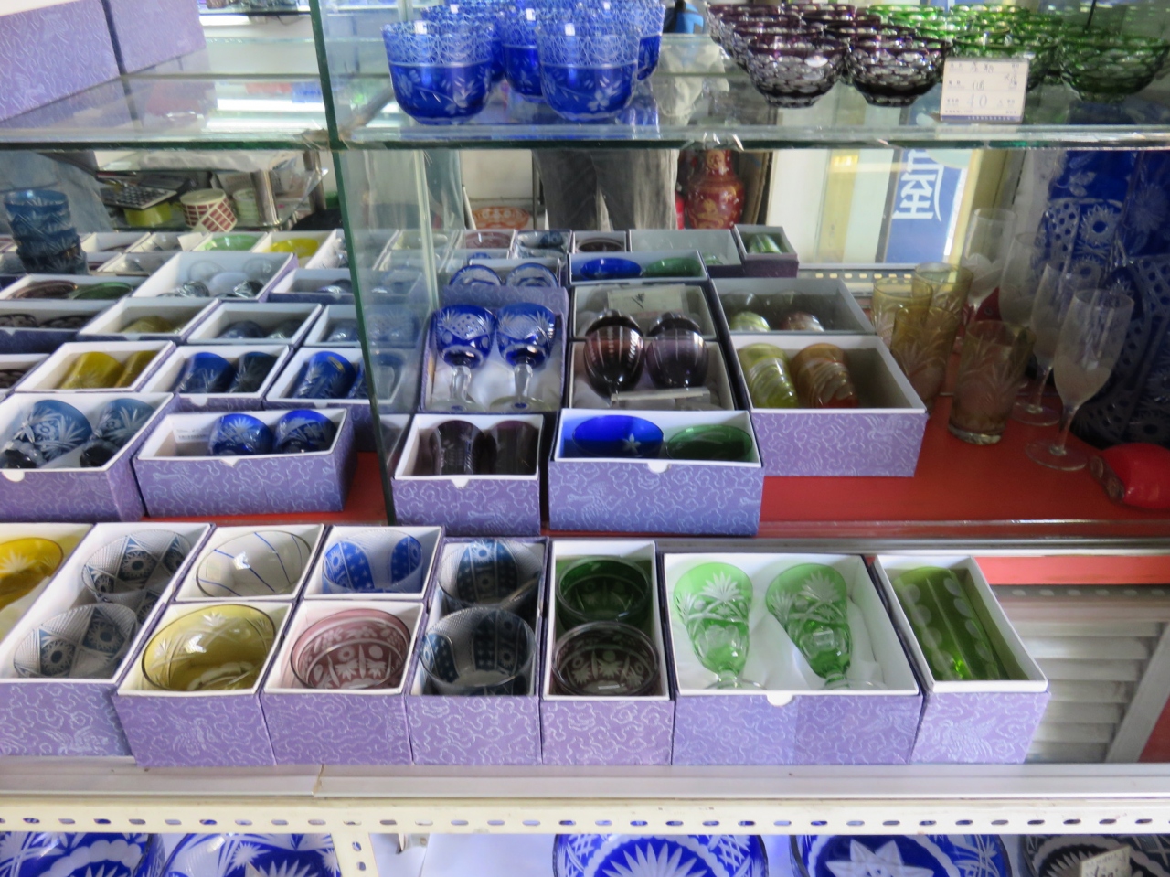 皆様の書き込みを見て買いに行ってきました。朝9時半から開店しているのは有りがたいです。5分位前に行ったら開いていたので店舗に入ったら、外にいた御爺さんが照明を入れてくれました。また、購入するのが判ると息子さんに連絡していました。御爺さんは動作がゆっくりなので電話で応援を要請したのかな?価格は30元(小さなオチョコサイズ)小さなコップ、そうめんのグラスサイズが40元でした。高い方は買えないので無視しました。40元を5個頼むと5個セットの箱を使ってまとめてくれました。また、1個40元の物をおまけだと言ってくれました。お二人とも少し日本語が喋れるようで、帰りがけには「気をつけて、帰ってください」と言って送り出してくれました。