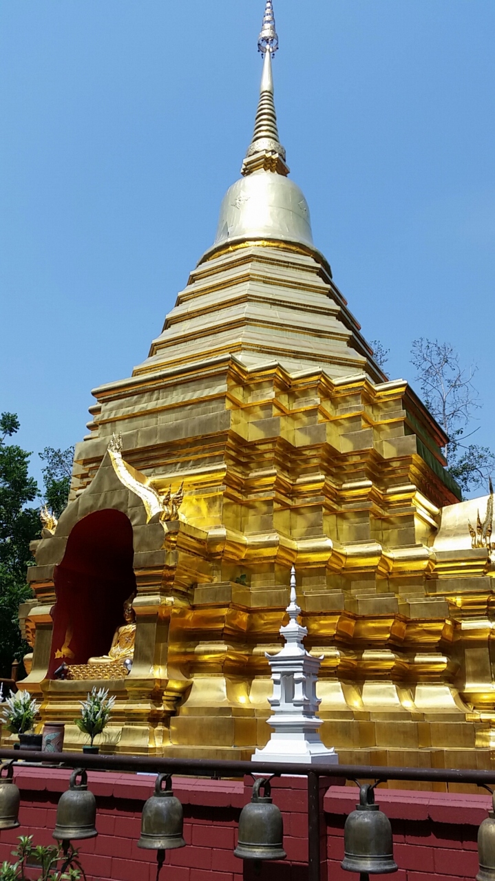 この寺院は、ターペー門を抜けて旧市街側へ出て、ブラックキャニオンコーヒーの前の東西路であるラチャダムヌン通りを旧市街の中心に向かって進む。この通りはサンデーマーケットで有名な通りです。