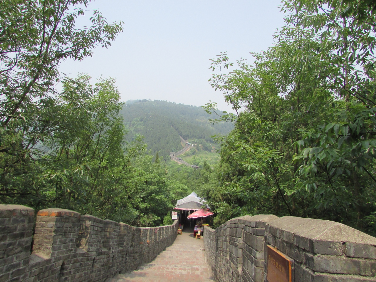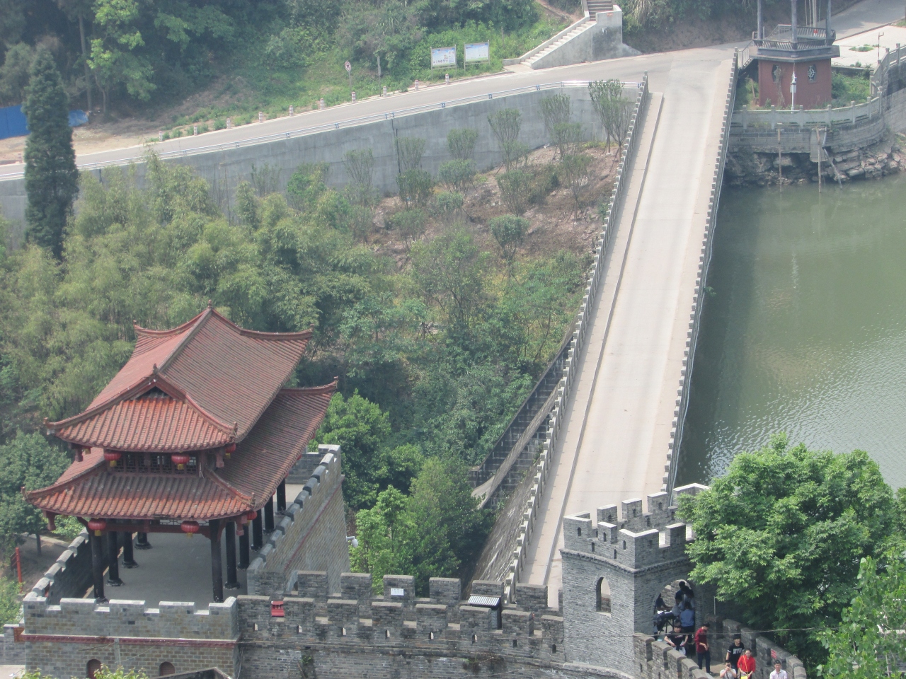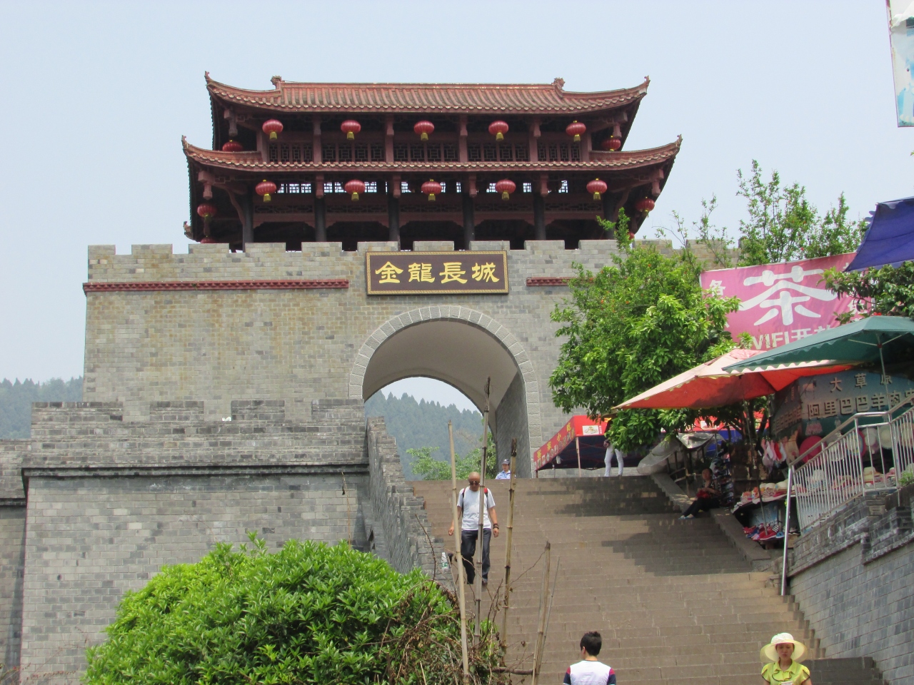 成都市街から東へ25km位の所にあります。万里の長城に比べると、ずいぶん小さいらしいのですが、十分に大きいです(入城5元)。山頂の金龍寺まで続いているのですが、私は到達することができませんでした。急勾配の階段はかなりキツイです。遠くまで見渡せる眺めは素晴らしいです。半分位まで行けば遠く彼方の山頂に金龍寺が肉眼で見えて、金龍長城の大きさを思い知らされます。何としてもここまでは行った方がいいと思います。金龍長城から車で15分位の所に洛帯古鎮があります。(長城入口には白タクが多く、洛帯古鎮まで10元でした)