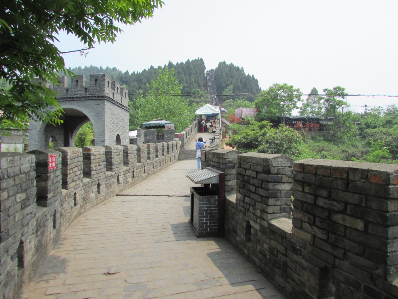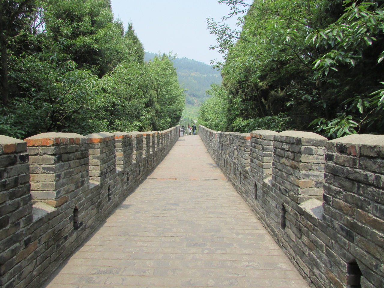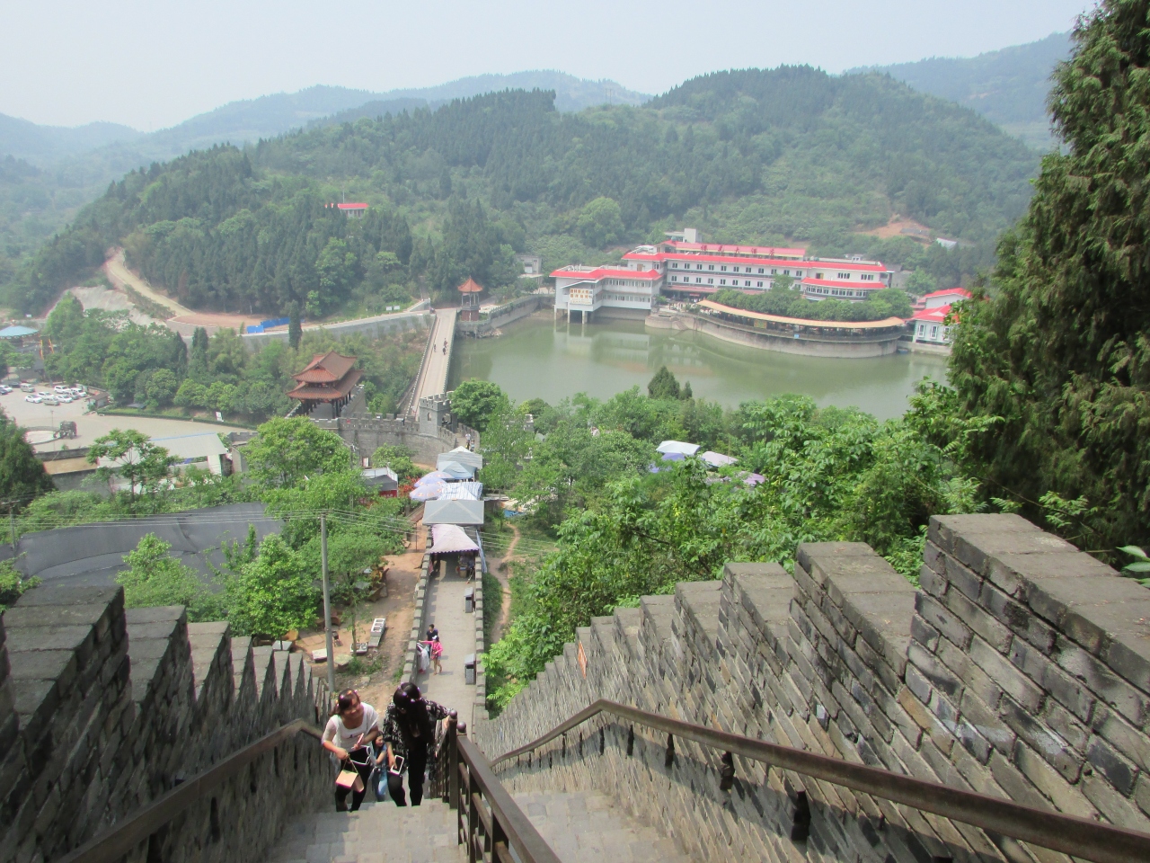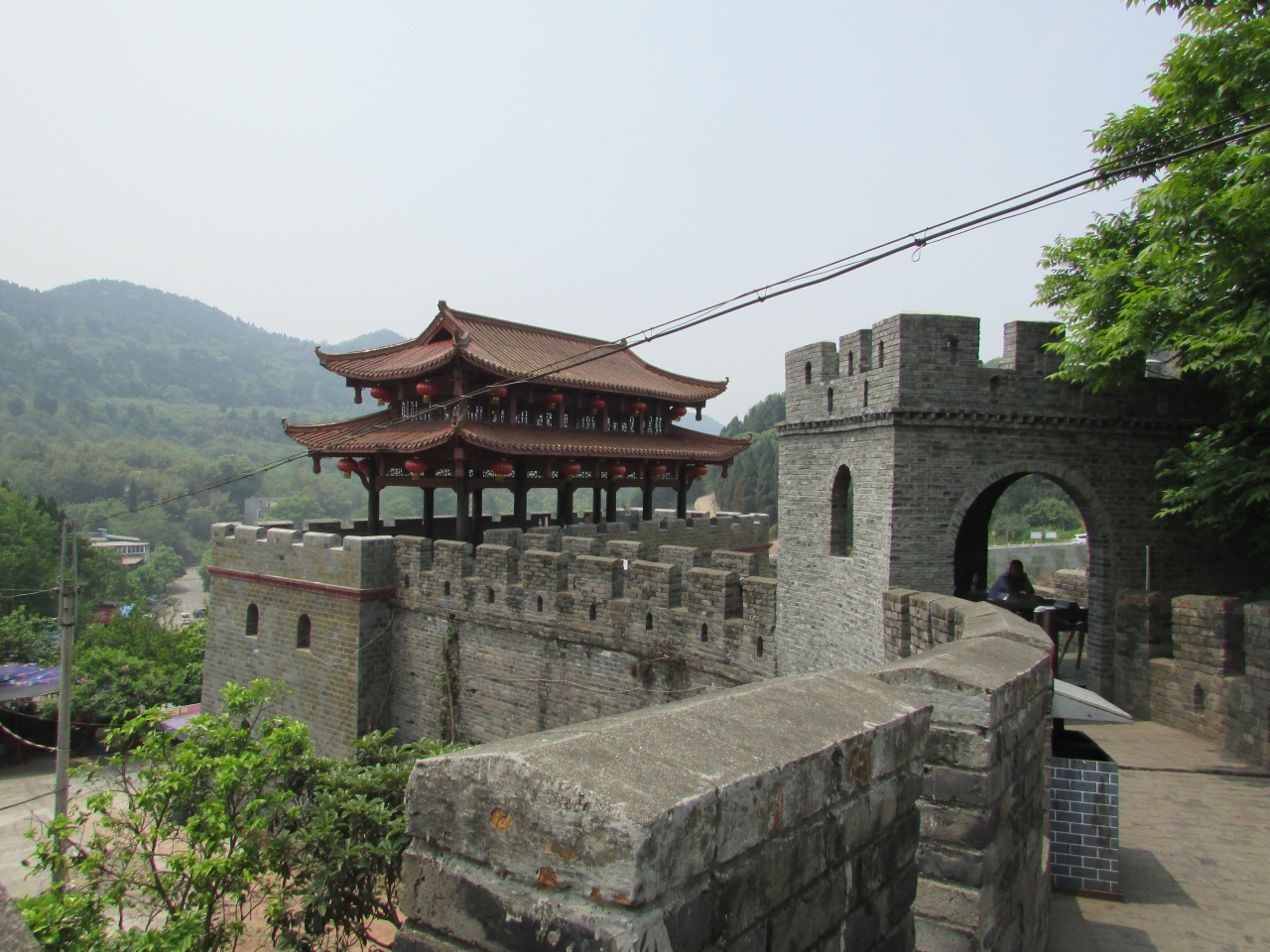 成都市街から東へ25km位の所にあります。万里の長城に比べると、ずいぶん小さいらしいのですが、十分に大きいです(入城5元)。山頂の金龍寺まで続いているのですが、私は到達することができませんでした。急勾配の階段はかなりキツイです。遠くまで見渡せる眺めは素晴らしいです。半分位まで行けば遠く彼方の山頂に金龍寺が肉眼で見えて、金龍長城の大きさを思い知らされます。何としてもここまでは行った方がいいと思います。金龍長城から車で15分位の所に洛帯古鎮があります。(長城入口には白タクが多く、洛帯古鎮まで10元でした)