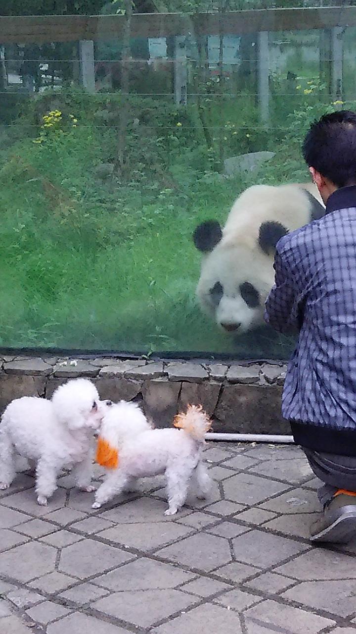 三江風景名勝区とチベット族村にいたプードル犬とパンダ