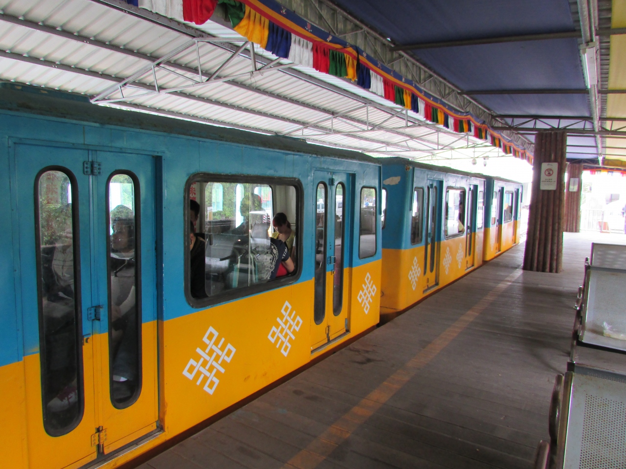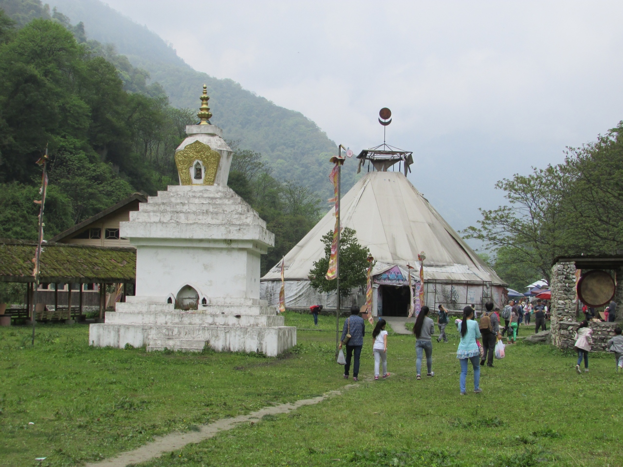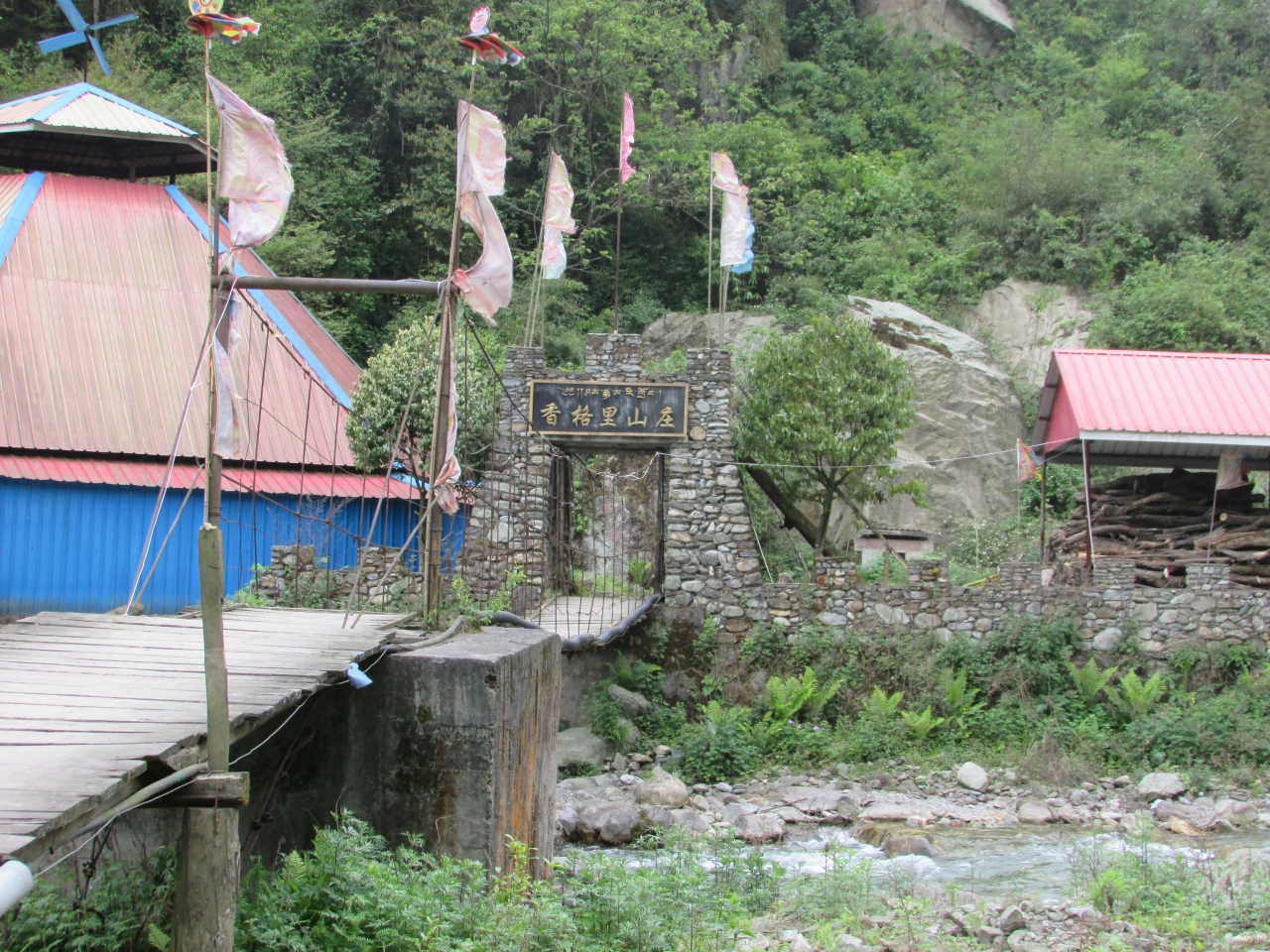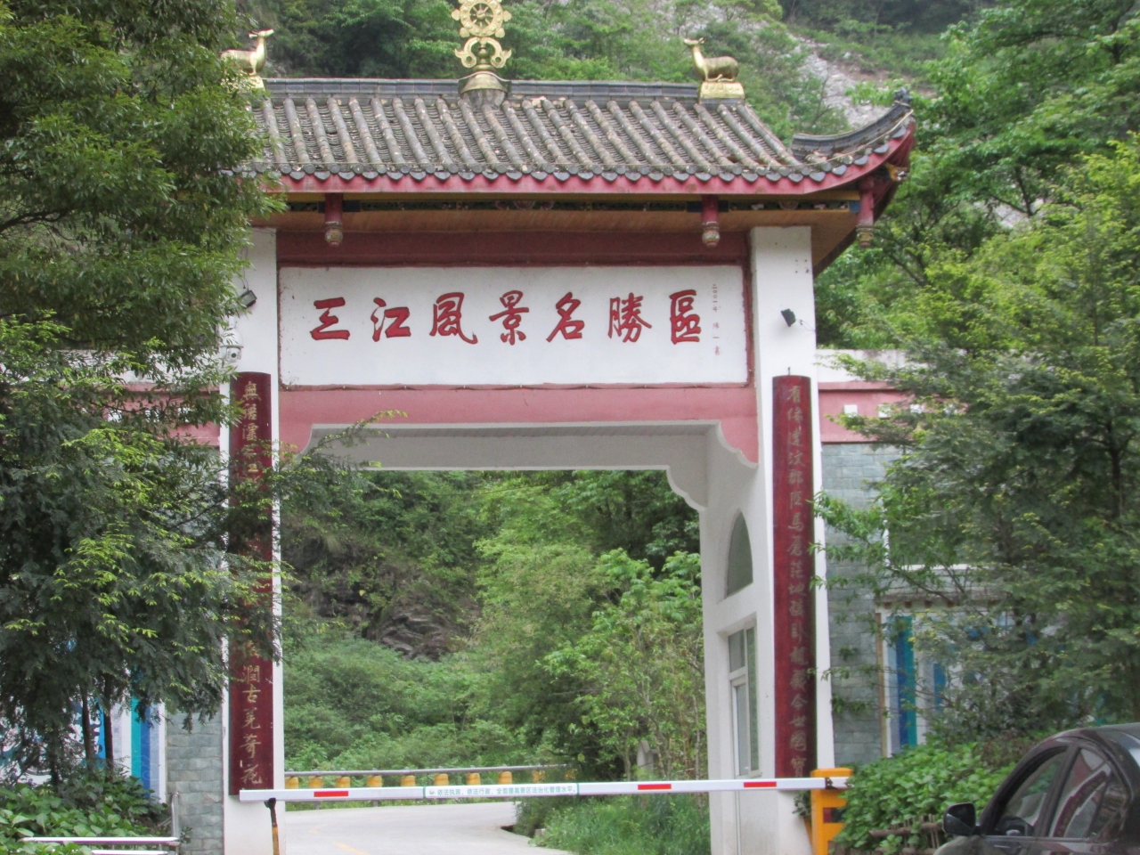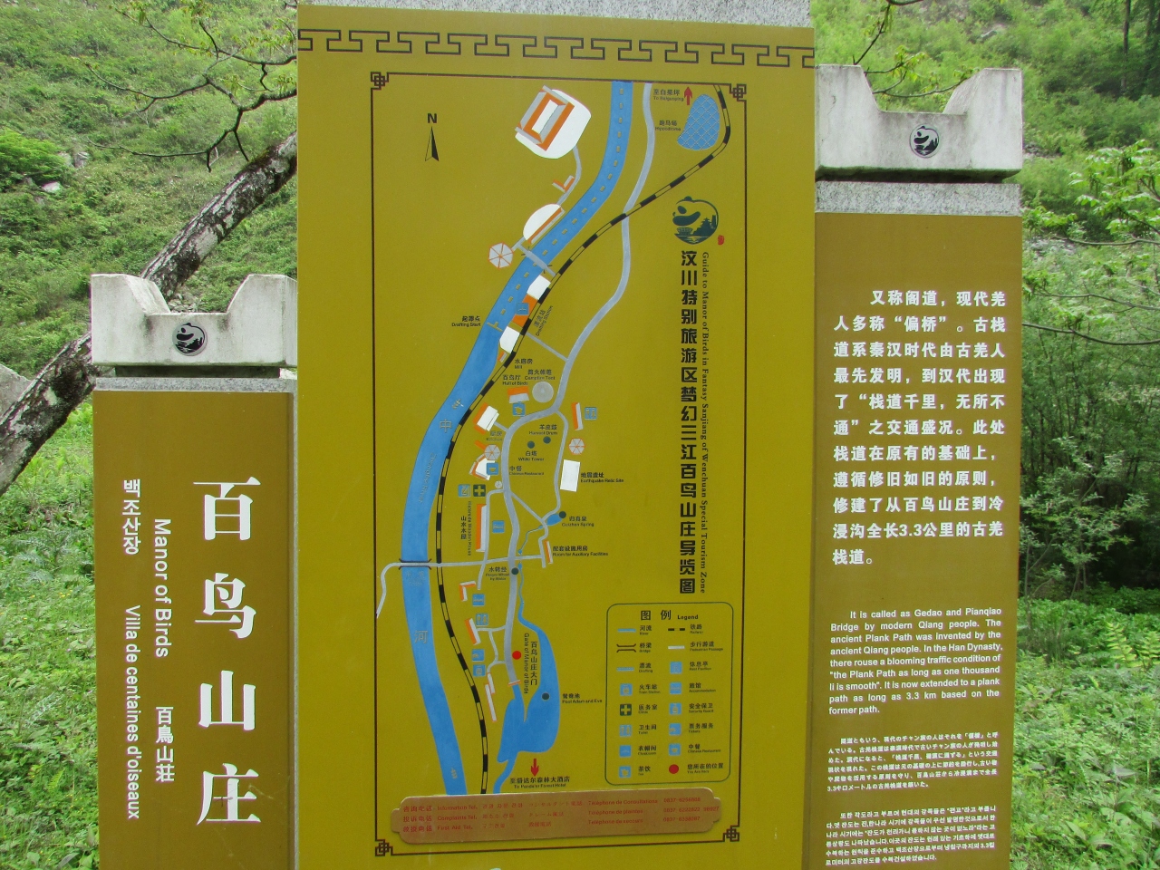 成都から西へ約80kmの映秀から更に南に約40km程山奥に入った所にあります。三江風景名勝区(入場料50元)に入ると18幸福湾という18のカーブを登り、更に登山鉄道(15元)で進むとチベット族の建物が独特の雰囲気を漂わせる場所に着きます。この場所は四川大熊猫棲息地のど真ん中と言ってもいい場所です。三江鎮の麓にあるチベット村の公園(無料)には2頭パンダがいます。パンダ舎の壁がガラスのため、時には犬とパンダのにらめっこが見られる珍しい場所です。