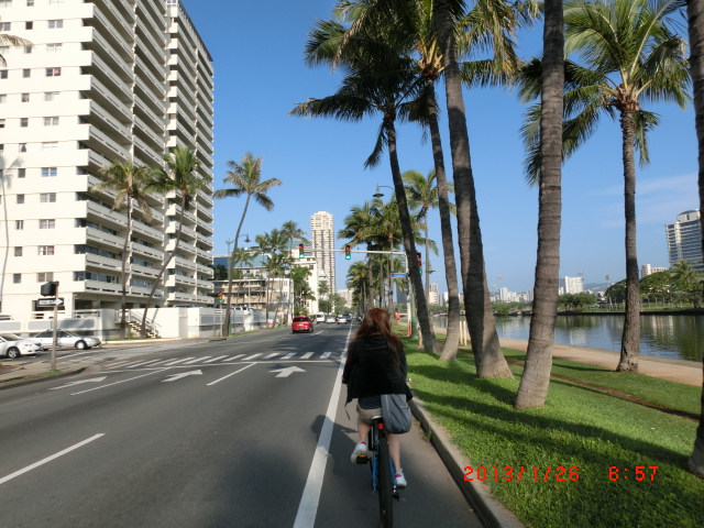 きれいな水ではないけれどこの景色を見るとハワイにいるんだなと感じることも多いです。