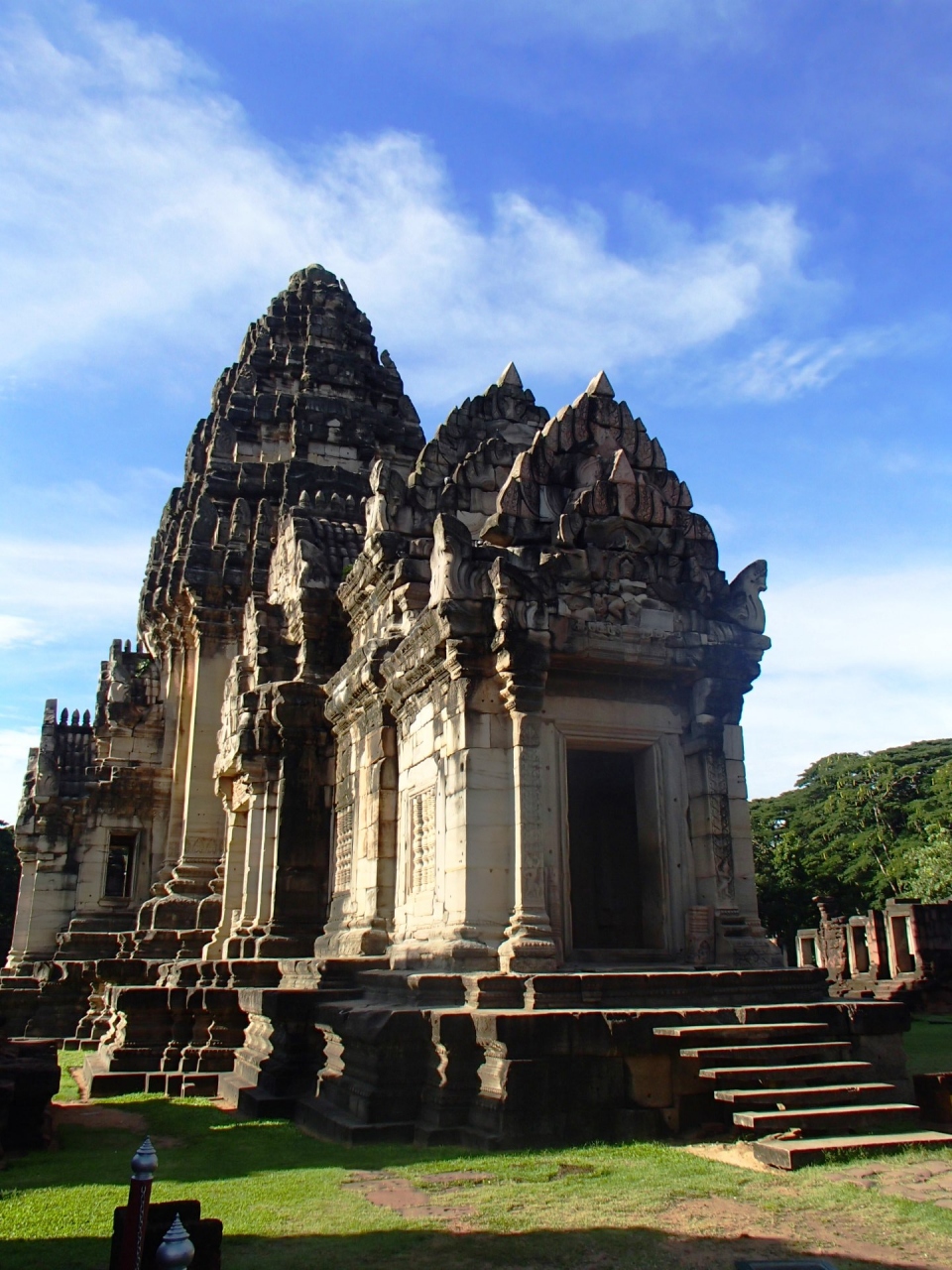 ナコーン・ラチャシマーから約60キロ、バスで約1時間半のピマーイにある。11~12世紀頃にクメール王朝が建造した石造寺院。南に位置する竜王橋から、クメール帝国の首都・カンボジアのアンコールまで、一直線に道が続いていたという。
