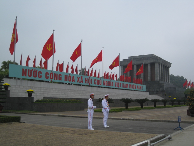 文廟から歩いていきましたが、この辺りは市内の中心部とは違い、車道も歩道も広々としてバイクの洪水もなく、他国を歩いているようでした。バーディン広場はだだっ広い。ホーチミン廟の周りにラインが敷いてあり、外国人観光客などが写真撮影のためにちょっとでも中に入ったらすぐに声をかけられます。