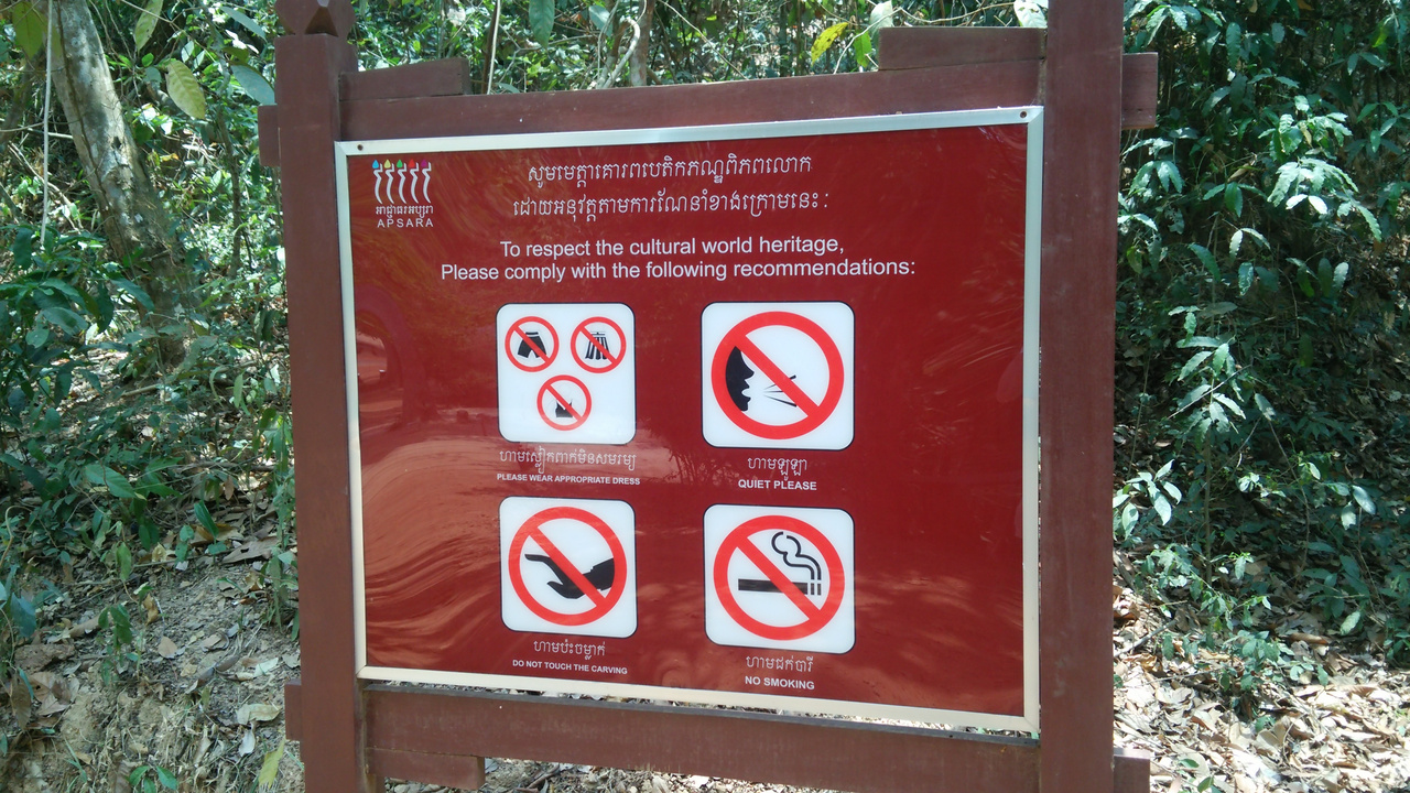 登山入口に注意書きの掲示板があって、スカートや短パンでの登山は禁止されています。