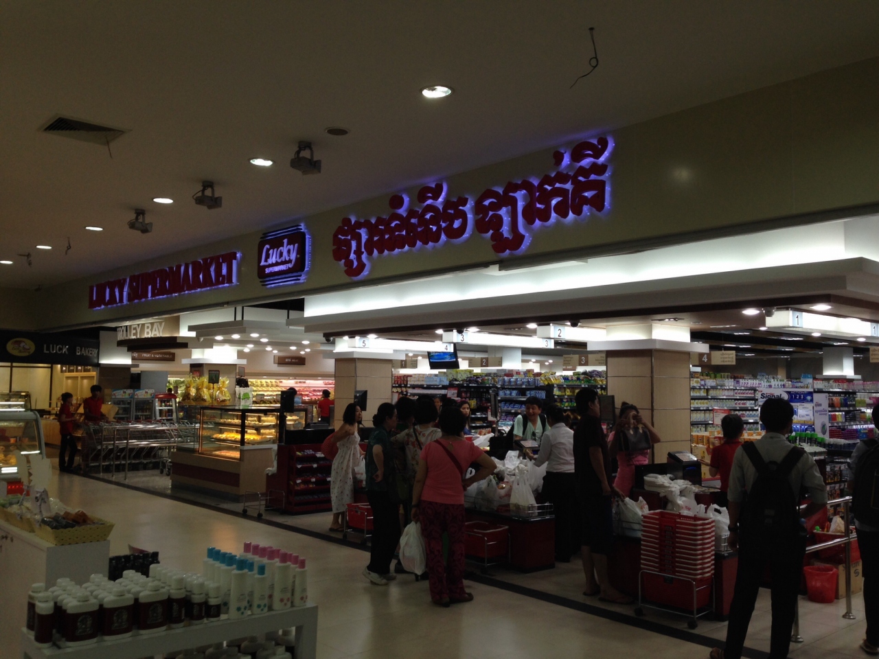 シェムリアップのショッピングセンターでエアコン完備の3階建です。お土産探しというよりは、1階にあるラッキースーパーマーケットで飲み物やフルーツの買い出しメインで行きました。スーパーの前のアイスクリーム屋さんで食べたアイスクリームは絶品でした。おすすめです。