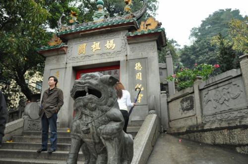 多くの中国人観光客が訪れ、賑わっています。階段の多い寺院で、上に上がって行くと、対岸の珠海がはっきりと見えました。また、沢山のらせん状の線香が天井からぶら下がっていて、ゆるりゆるりと煙を立てていました。