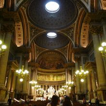 外観はギリシャの大きな神殿という感じですが、中は意外にも教会です。中は天井が高くてとても広く、祭壇には彫刻や絵画が置かれていました。厳かな雰囲気のなかで、観光客以外にも信者の方が牧師様のお話を聞いていました。入場無料なのも嬉しかったです。