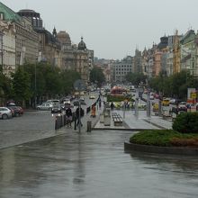 地下鉄A線とB線が交差するムーステク駅から国立博物館まで続く、広場というより大通りという感じの広場。長さ750m、幅60mもあり新市街のランドマークです。プラハの春の舞台となった広場ですが屋台やカフェ、レストランがたくさんある繁華街の通りで昼は良いのですが、夜はいかがわしい女性も立っていて雰囲気は少し悪くなります。