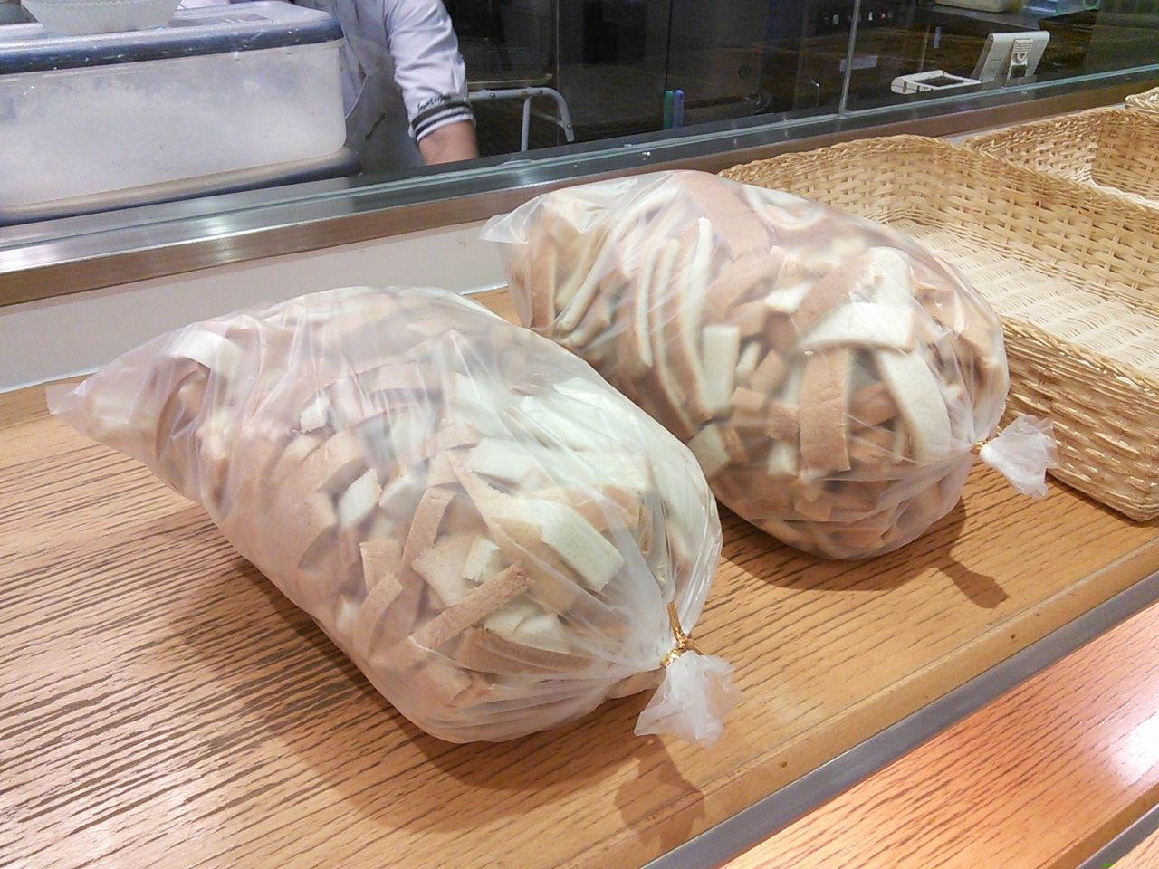 セントラルワールドに入っている伊勢丹の5階に「SUN MOULIN(サンムーラン)」というベーカリーがあります。これは日本のヤマザキ製パンの現地法人が経営しているお店でもちろん売られているパンは日本クオリティー、とってもおいしいです。数ある種類のパンの中で私のおすすめは“パンの耳”。耳といっても高級食パンの耳なので味は保証付き、あなどってはいけません。店頭には並ばない裏メニュー的な物ですか店員さんに言えばちゃんと出してくれます(もちろん売り切れていなければですが…)。一袋30Bと超格安。しかもものすごい量。1人では食べきれないので要注意です。