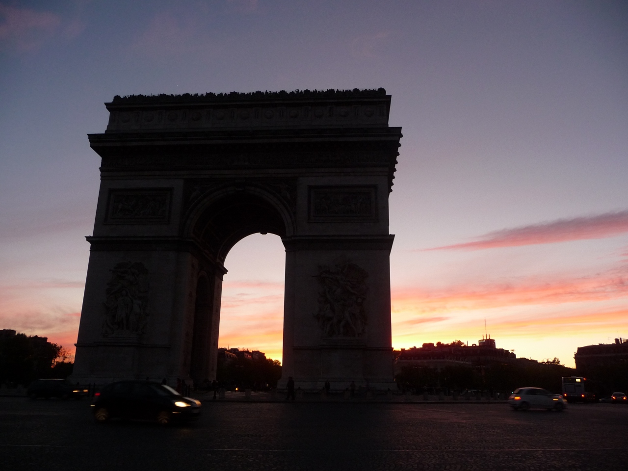 夕景&夜景の鑑賞のつもりで8時過ぎに訪れました。ここでもパスが活躍。少し並んでいましたが、ミュージアムパス持参者はすぐに入場できました。が、入ると延々と続く小回りの螺旋階段。息を切らし上り終えると、放射線状に伸びるパリの夕景が広がり、苦労も一瞬で吹き飛びます。是非、訪問いただきたい場所です。