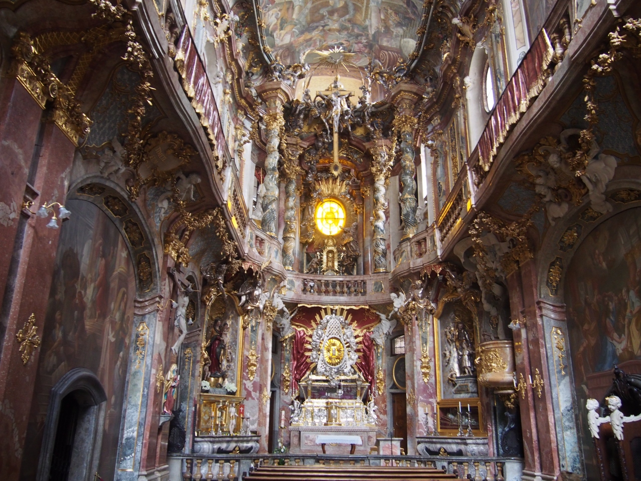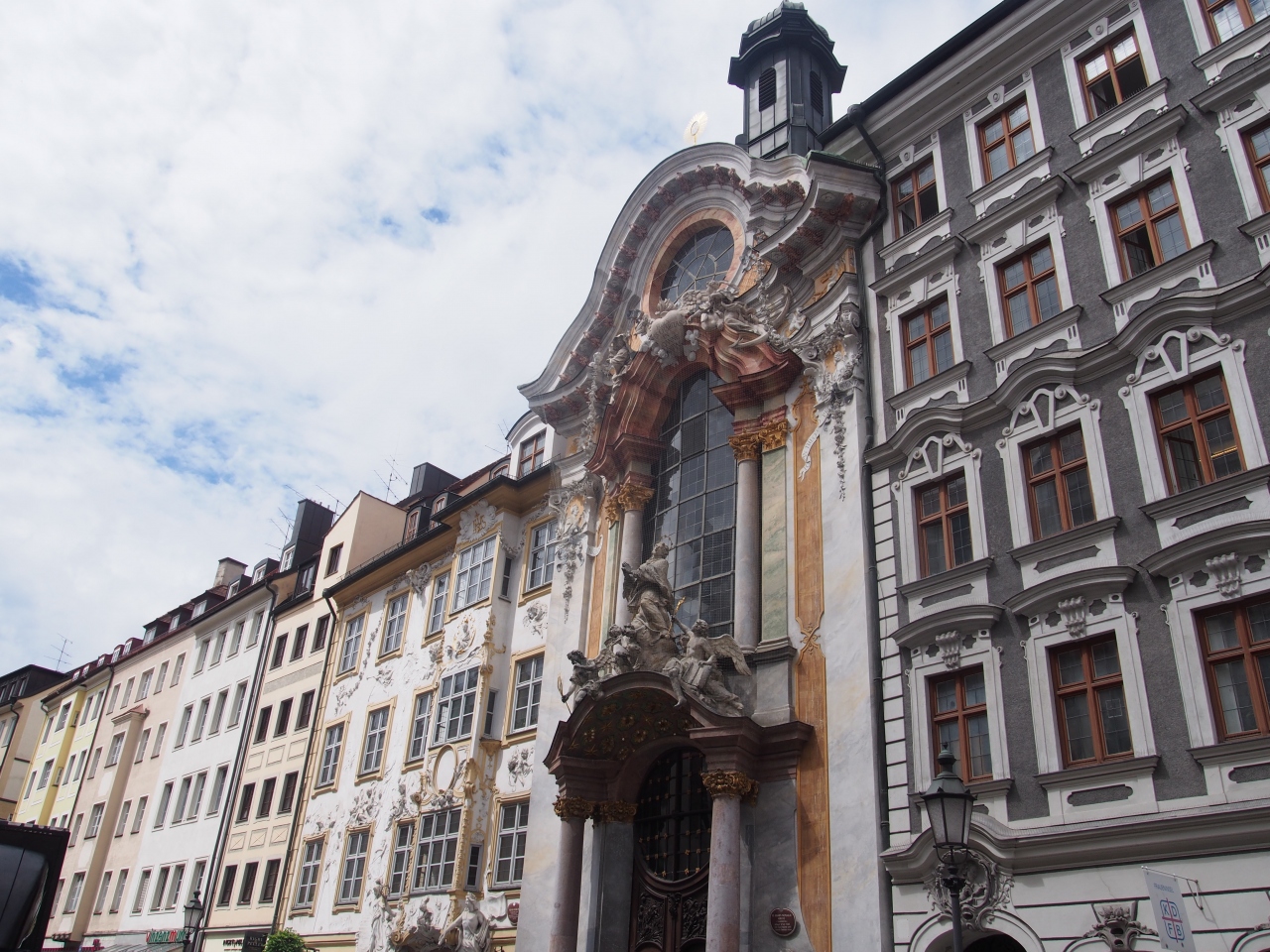 ミュンヘンの新市庁舎から徒歩で数分離れたところにある教会。フラウエン教会やペーター教会ほど大きくなく、こじんまりとした教会ですが、天井画や壁面の装飾が豪華でした。