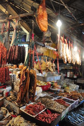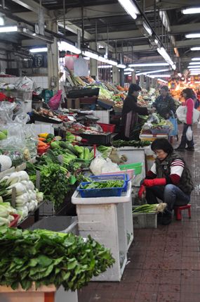 建物内には、野菜、魚、肉、乾物類などが売られています。隣の建物に龍華茶楼があるので、龍華茶楼で早茶をしたあと、紅街市をぶらぶらしました。朝から周辺住民の方が訪れて、賑やかな市場でした。