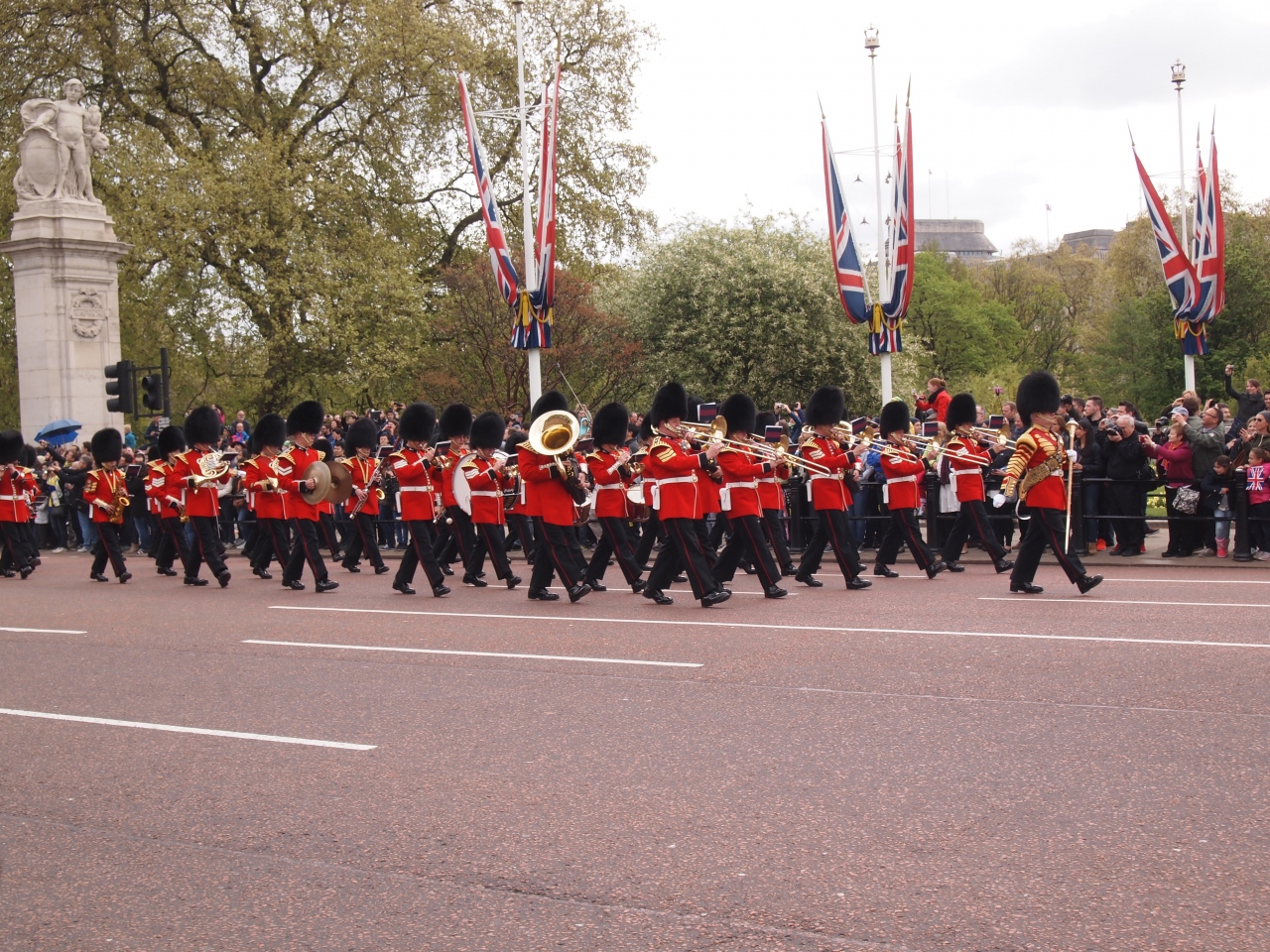 みんながバッキンガム宮殿を目指すので、場所を確保しましょう。 私たちは10時過ぎに行き、ロータリー脇を確保しました。 行進と、交代を両方見るのは、かなり前から並ばないとダメでしょうね。 殆どの観光客は、新しい兵隊さんが行進し終わると、帰ってしまうので、兵舎に帰る衛兵を見るのも手かもしれません。