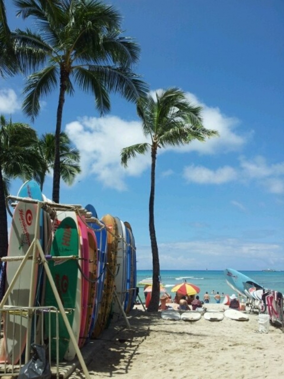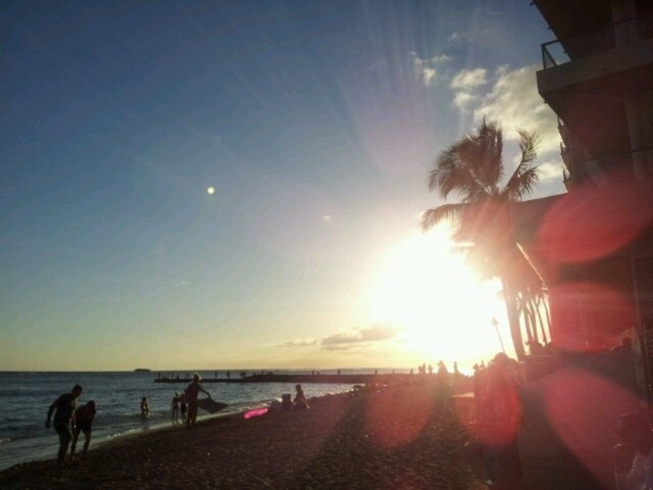 個人的に、日本の海より回数をこなしてるワイキキビーチ。毎回この人混みをみると、「日本人ばっかで嫌だわー」と思う反面、どこか安心している自分もいたりします(笑)こないだ、ホヌが浅瀬近くまでやってきました。写真は撮れなかったものの、沖にポイントがあるのは知っていたので、とてもラッキーな出来事でした(*^^*)ワイキキビーチ、混雑していてもやっぱり最高です。