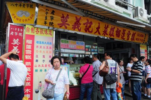 タイパの土産物ストリート、官也街にあるデザート店です。テーブルなどはなく、テイクアウトのみ。目の前が広場になっているので、そこで食べている人もいます。