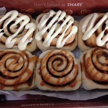 シナモンロールの上にクリームチーズかキャラメルフィリングを掛けてくれるのですが量を選べます。少な目、普通、多めなど。クリームチーズ多めがおススメです。