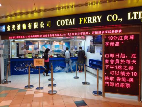 香港島の上環にあるフェリーターミナル。ホテルをタイパに取っていたので、ここからフェリーに乗って、マカオのタイパフェリーターミナルに行きました。イミグレはもうひとつの香港のフェリーターミナルと同じく、E-Channelが使えたので便利でした。タイパまでは185香港ドルでした。