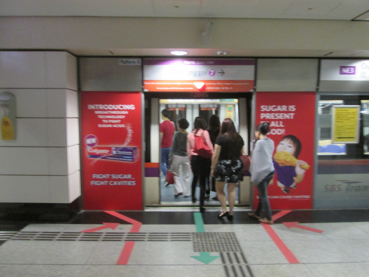 シンガポールの移動手段のひとつです。東西線、南北線、東北線、サークル線、ダウンタウン線の5路線があります。主要な場所の近くには地下鉄の駅があり、大体、地下鉄で移動できます。駅ホームにはガラス製の安全柵が設置されています。