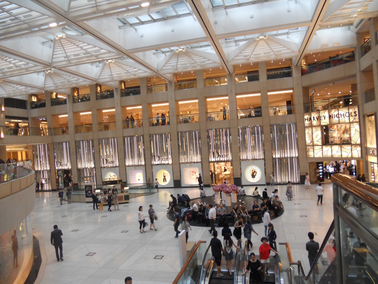 MTR「中環」駅隣接の高級ブランドショップがたくさん入っている大きなショッピングモールです。館内の中央部分に大きな吹き抜けがあって、とても解放感があります。上階に、こちらの吹き抜けに沿って、ロブションのカフェの座席があって、こちらでお茶しましたが、こちらからの眺めが良かったです。