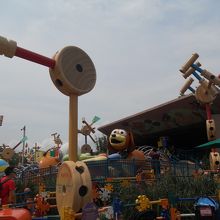 香港ディズニーランドオリジナルのアトラクションが一番多いエリアです。「RCレーサー」「トイ・ソルジャー・パラシュート・ドロップ」「スリンキー・ドッグ・スピン」はいずれも香港ディズニーの中では待ち時間が長めでしたので、一番最初に行かれた方がすぐに乗れると思います。「トイ・ストーリー」の世界が体感できてとても楽しめます。
