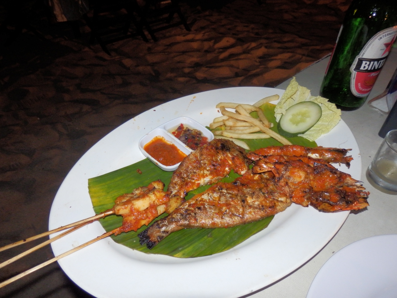 料理自体は正直微妙な上にビーチの上なのでテーブルとイスが傾いていて食べづらかったです。